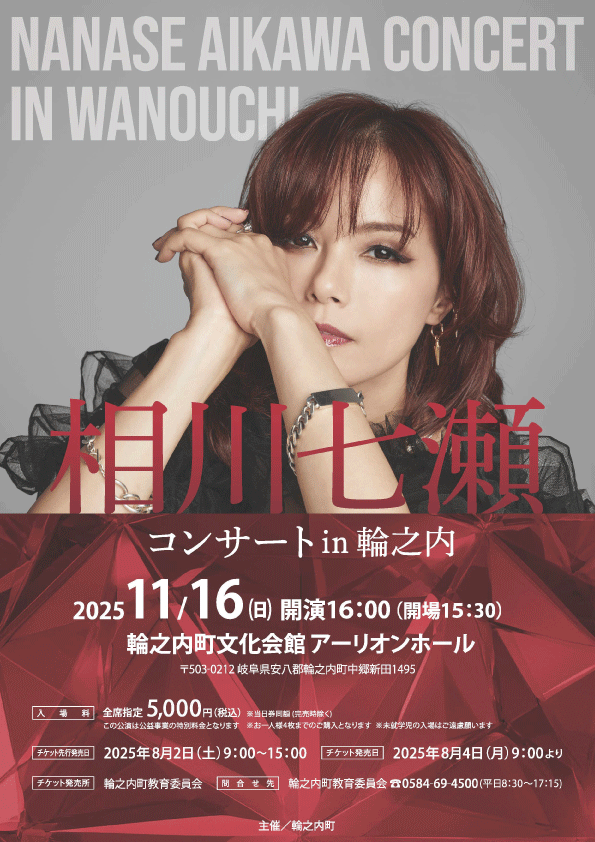 25年11月16日(日)相川七瀬コンサートin輪之内(輪之内町文化会館)